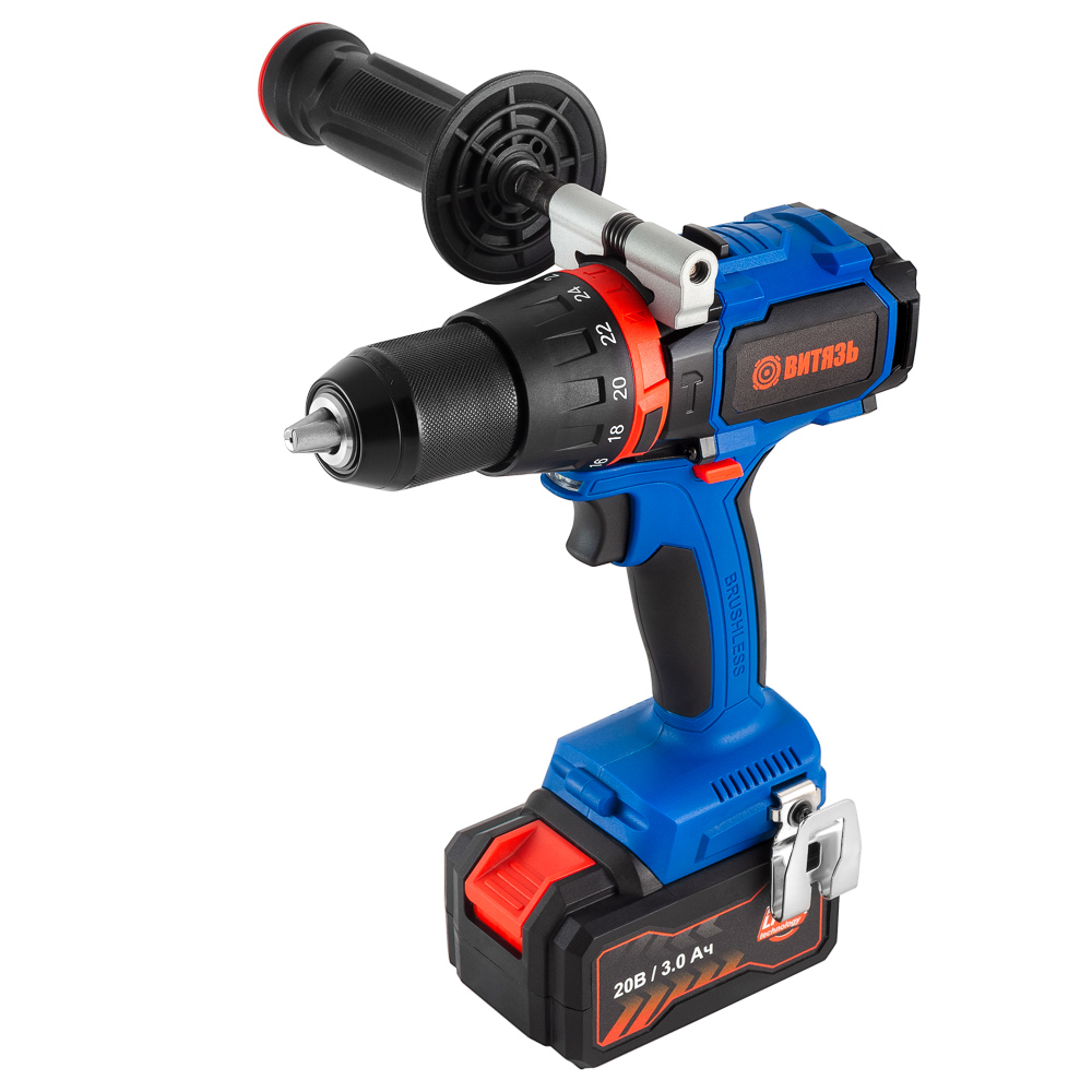 Ударная, бесщеточная аккумуляторная дрель-шуруповерт Витязь ДА-424-2 серии Professional широко используется при строительных и монтажных работах. Подходит для сверления, сверления с ударом и закручивания крепежа. Для удобства оснащена дополнительной рукояткой.