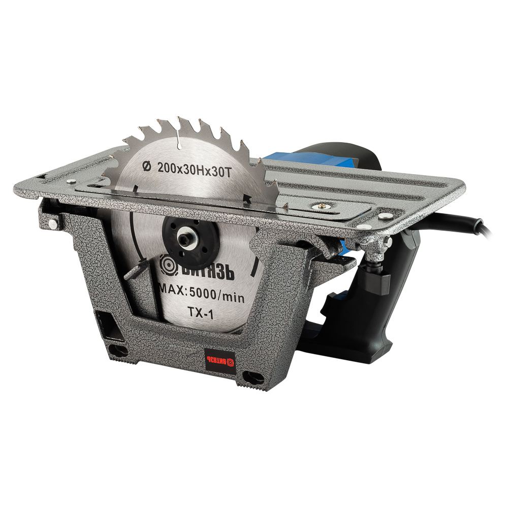 Комплектация: пильный диск 200х30х30Т , опора для крепления, крепежные элементы для стационарной установки, кожух защитный подвижной части, ключ шестигранный.
