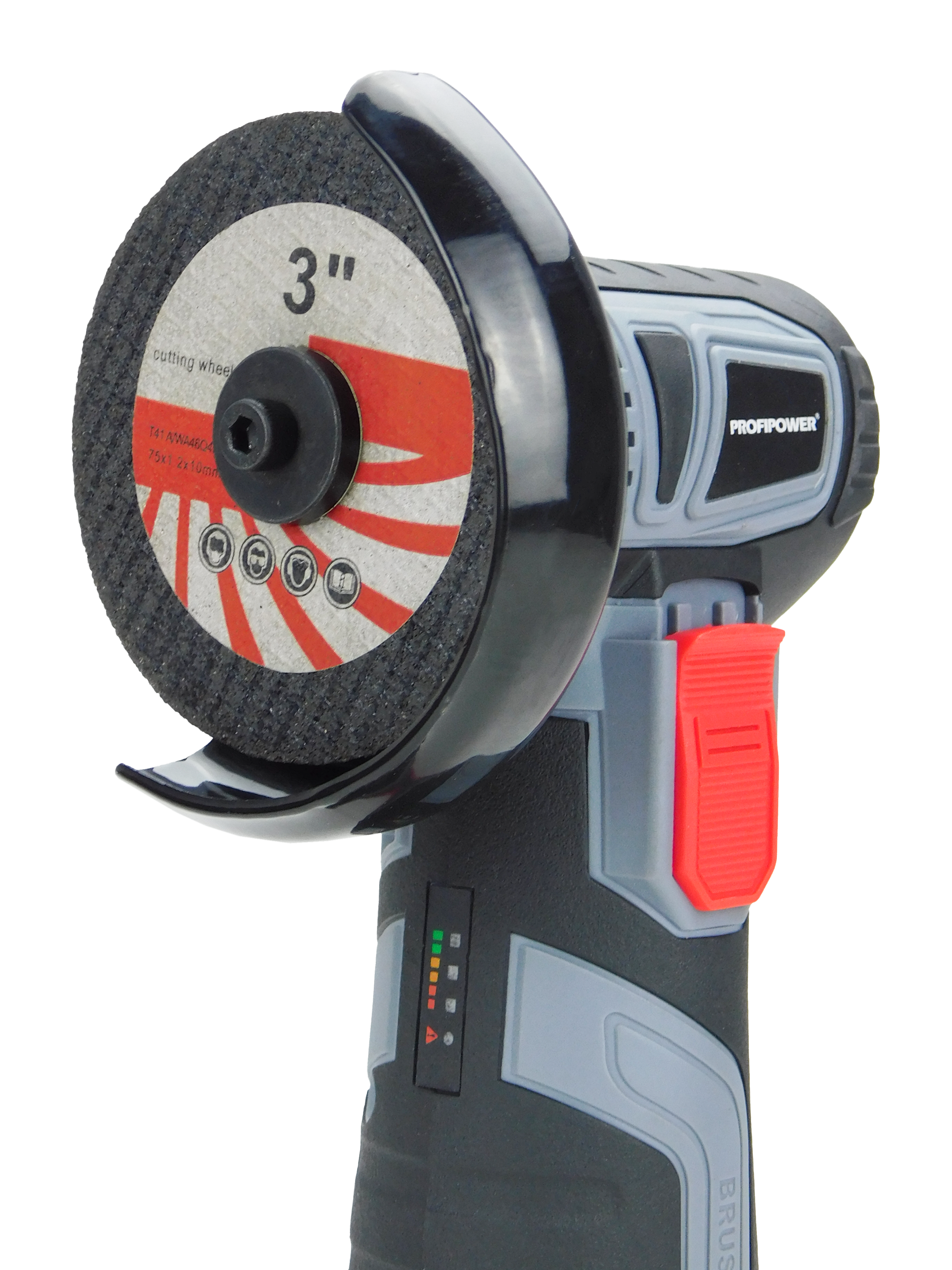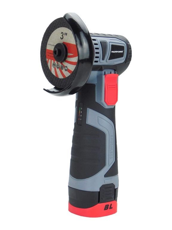 Аккумуляторная бесщеточная угловая шлифовальная машина PROFIPOWER BL-164 предназначена для резки металла, пластика, плитки и ламината при установке соответствующих отрезных кругов.