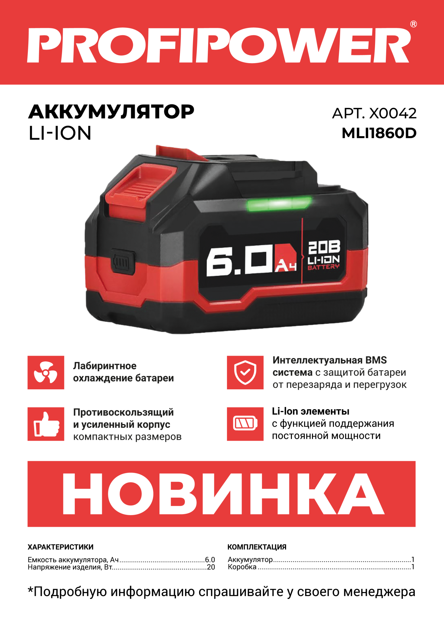 Аккумулятор 20V 6.0Ah – мощность и надежность для вашего инструмента!