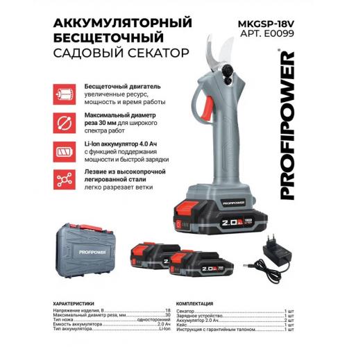 E0099M1 Аккумуляторный садовый секатор PROFIPOWER MKGSP-20V