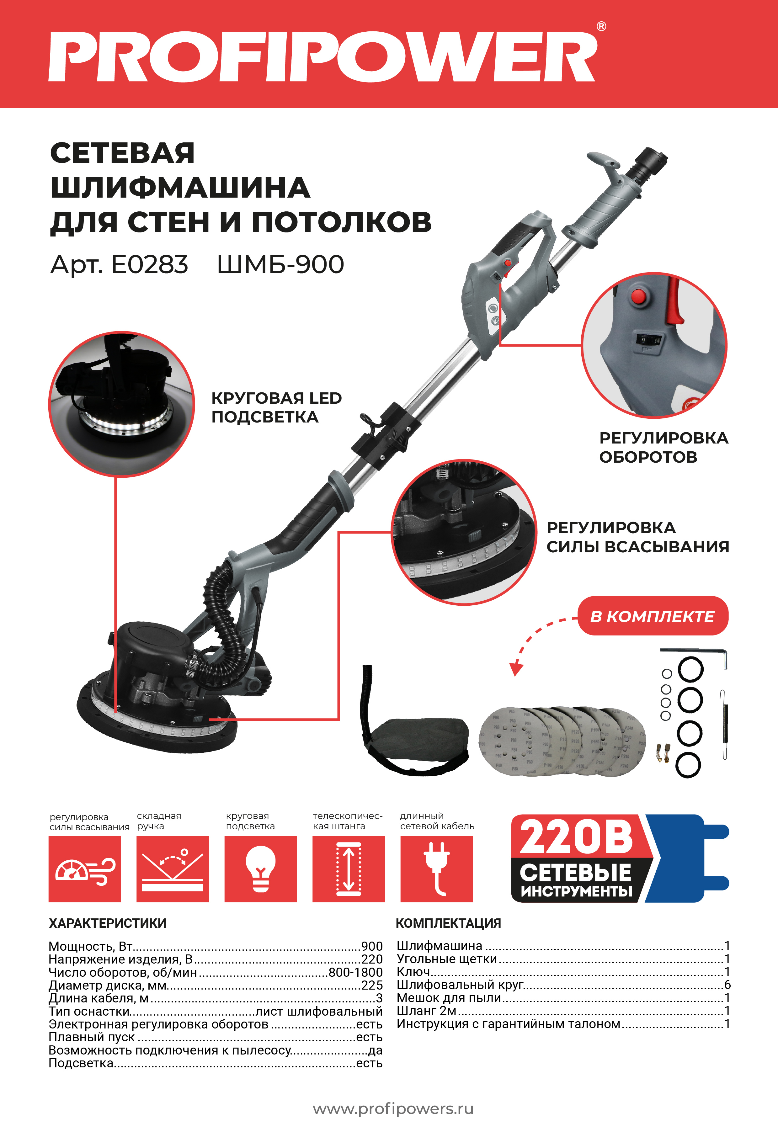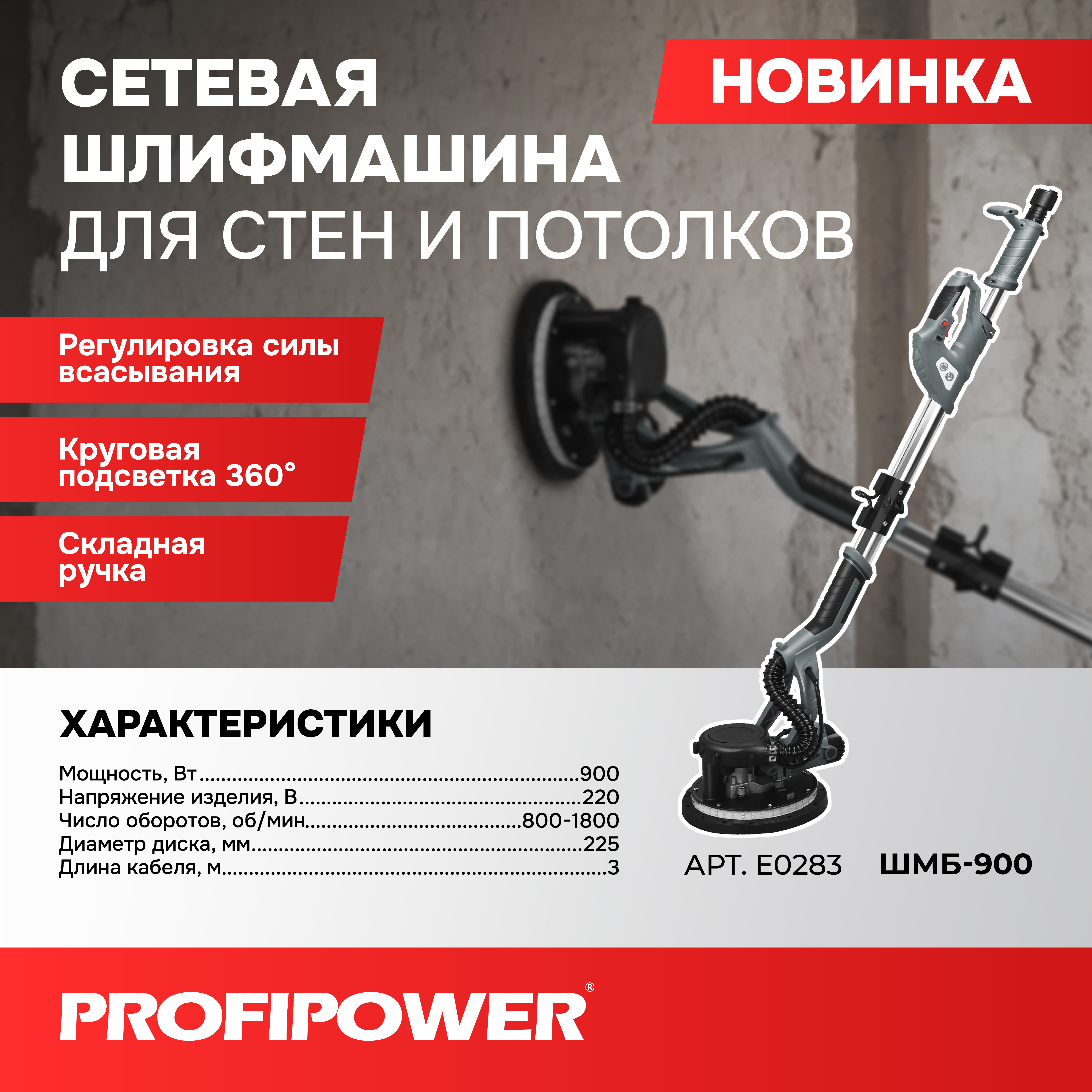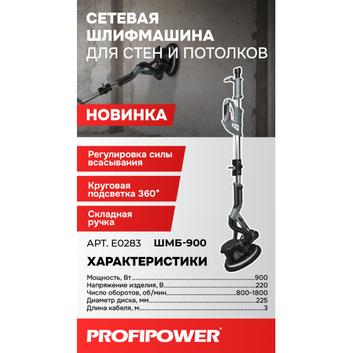 E0283 Шлифмашина для стен и потолков PROFIPOWER ШМБ-900.